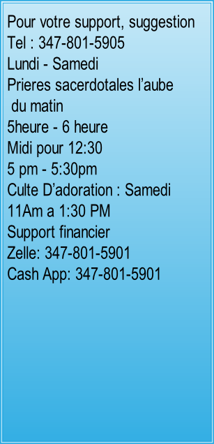 My name is JEAN SAGESSE WITH A GIVEN NAME:Evangelist Joseph Pierre. I started this Ministry in April of 1989. I published from that period to this present time: 987 Audio cassette tapes messages, 600 video Cassettes messages, and 5000 pages of magazines under the title: “L’OUVRIER DE LA ONZIEME HEURES”; (means: the 11th hour workers). The last magazine was published in October 1996. In January 1997 I did my first Broadcast in “Radio Lumiere International in Brooklyn, NY”: Starting from the last Sunday of October 1997 under the title “LA VOIX DE LA PROPHETIE” (means: the Voice of Prophecy). After two years with Radio Lumiere, I started a second show on Radio Lakay International in March 1999.